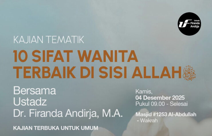 Ringkasan kajian ke-4 pada Safari Dakwah di Qatar yang disampaikan oleh Ustadz Dr. Firanda Andirja, M.A Hafidzahullah. Dengan judul 10 Sifat Wanita Terbaik di Sisi Allah Ta’ala.